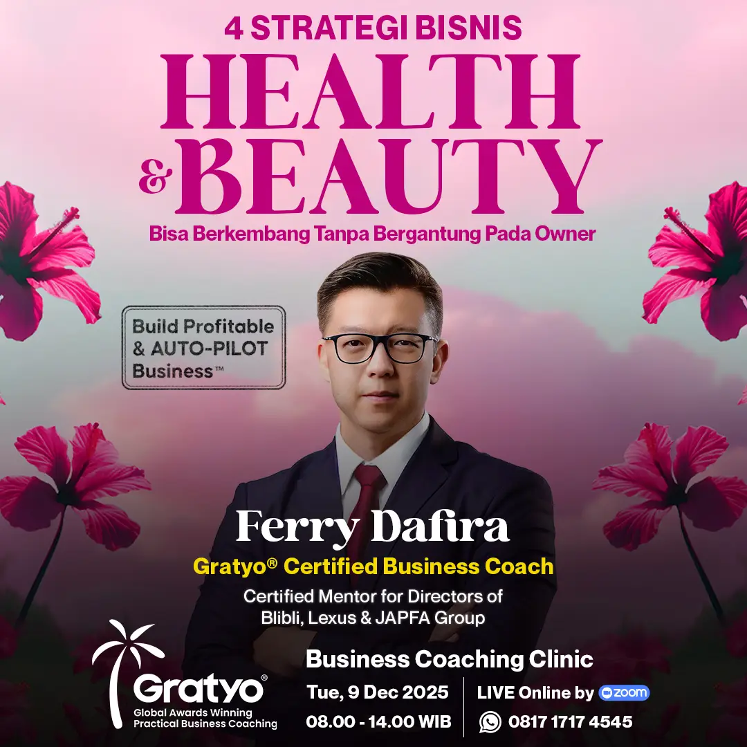 Bersama puluhan high-calibre Certified Business Coach di Gratyo® Global Awards Winning Practical Business Coaching Company berhasil membantu bisnis dengan revenue miliaran hingga triliunan rupiah go to the next level, bisa IPO, hingga bisnis Profitable & AUTO-PILOT™.